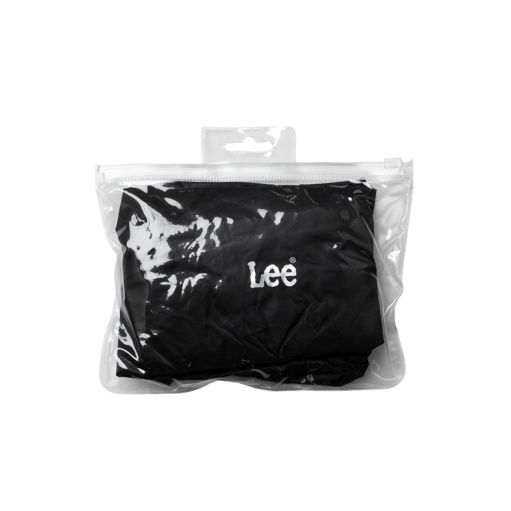 急な雨や泥はねに対応できるレインカバーを付属。収納ポーチ付きで、使わない時はコンパクトに携帯できます。レインカバーにもLeeのロゴ入りです。
